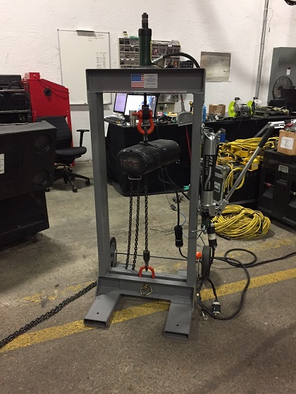 The new Cert-A-Hoist, LLC 10 Ton Mobile Test Stand is designed for testing of hoisting equipment as required by the applicable sections of ASME Code B30.16 “Overhead Hoists” and ASME Code B30.20 “Below-The-Hook Lifting Devices”. Equipped with base mounted wheels and built in fork slots, the Cert-A-Hoist Mobile Test Stand can easily be moved to multiple inspection locations.